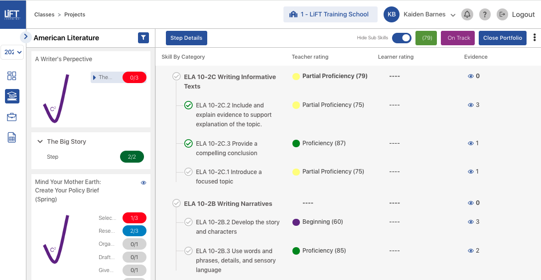 To ease the process of grading, LiFT is able to provide suggested grades: Portfolio Grade – A suggested rating for each Skill Portfolio assigned in a Class, averaging all the Evidence pushed into that Skill Portfolio from that Class Class Grade – A ...
