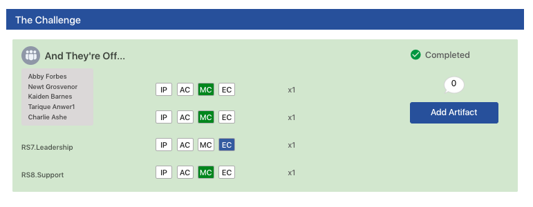 Learners can now identify their team evidences with a Team Icon next to the evidence name. If they click on or hover over that icon, they can see their fellow team members.